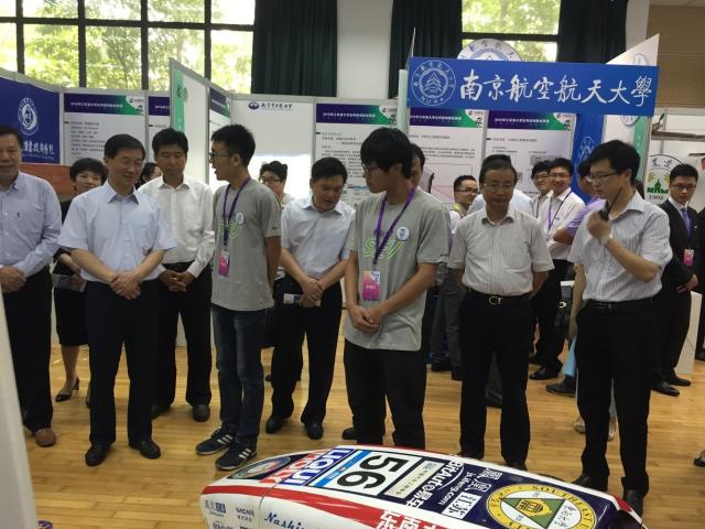 为推动大学生创新创业工作的深入开展,全面培养学生的创新精神和实践能力,充分展示大学生科技创新的水平和成果,营造“大众创业、万众创新”的良好氛围,团省委、省学联于6月6日至7日在淮阴工学院举办了大学生科技创新成果展,来自全省34所高校的百余件作品积极参展,经主办方筛选,确定37件作品参加成果展。在为期三天的展示中,江苏省副省长曹卫星、团省委书记万闻华等亲临现场,耐心倾听了东南大学力魔车队三位同学的讲解。
