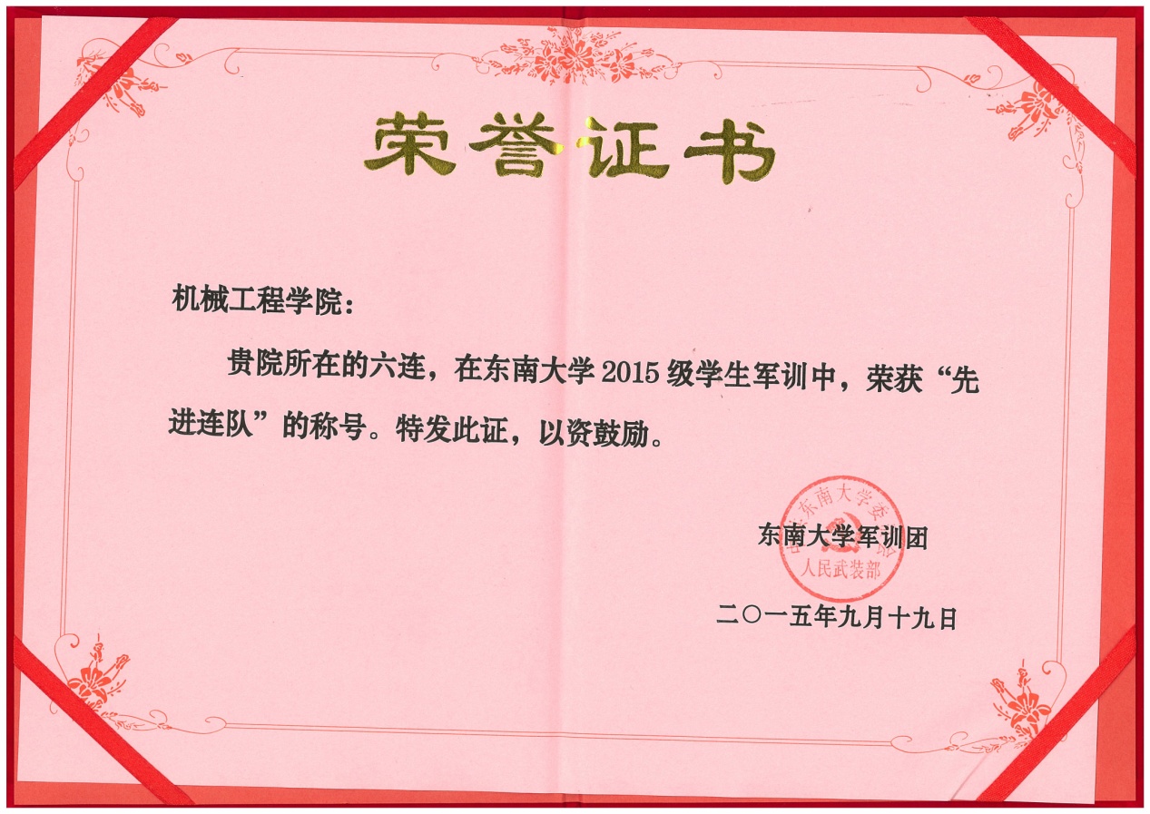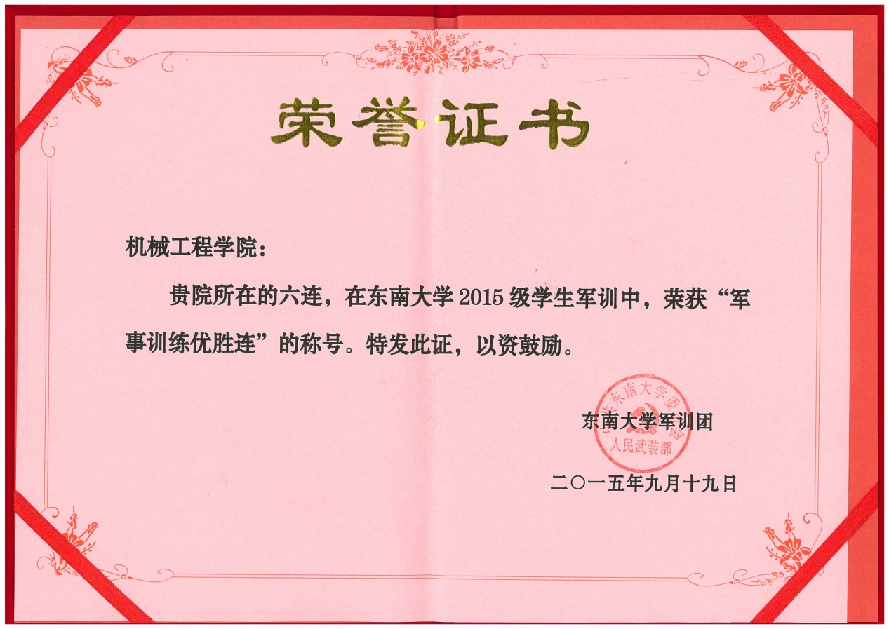 由机械工程学院与能源与环境学院组成的六连在此次军训中无疑成为一匹黑马脱颖而出,表现令人瞠目!从军事训练到文体活动再到内务卫生,六连的同学们都不甘示弱。在表彰之时,六连的名字一次又一次响起。六连赢得了“大满贯”——囊括了几乎所有的“第一”,他们以自己的实力,赢得了优胜连队,军事训练优胜连,宣传报道优胜连,文体活动优胜连,内务卫生优胜连。在各种比赛中,六连斩获拔河、合唱双项冠军,定向越野三等奖的成绩。辅导员梅仂盈、王瑜祥荣获优秀指导员称号。吴荣承等52名同学获得优秀学员。宋景晖,陶丰两位摄像师所拍摄的精美照片斩获四项大奖,三名同学赢得了征文比赛的奖项。