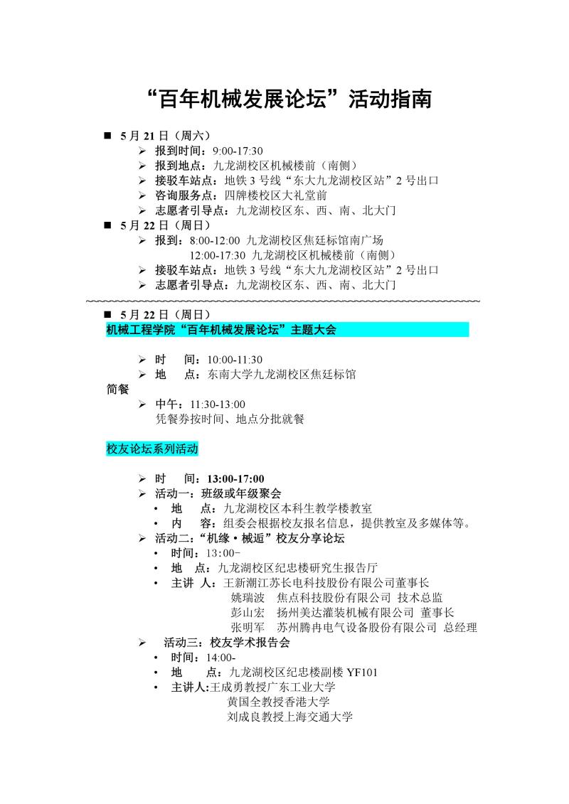 “百年机械发展论坛”系列活动活动指南