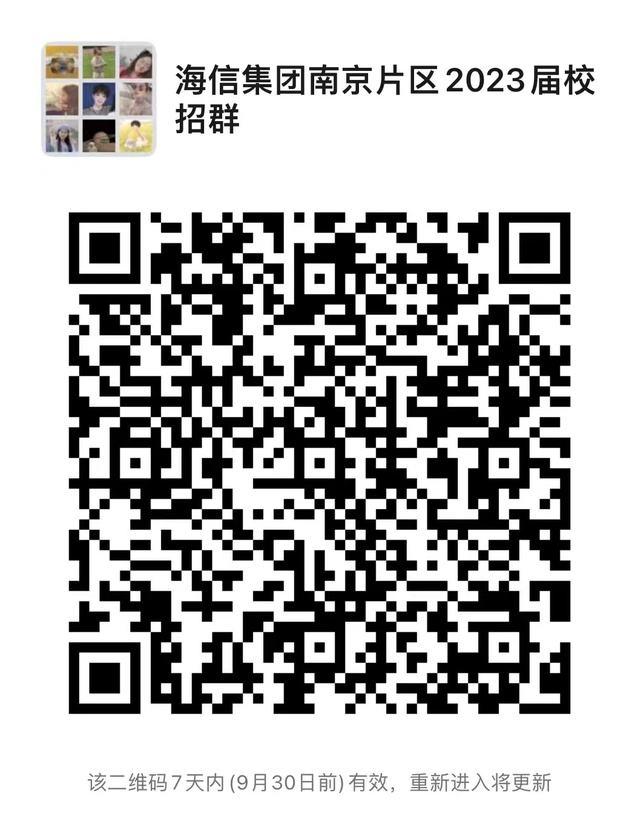 宣讲会报名请扫描下方二维码,加入海信集团东南大学校招群,距离海信更进一步!
