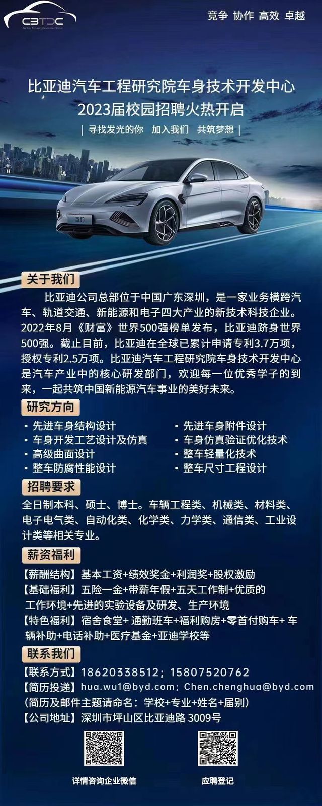 比亚迪汽车工程研究院车身技术开发中心2023届校园招聘