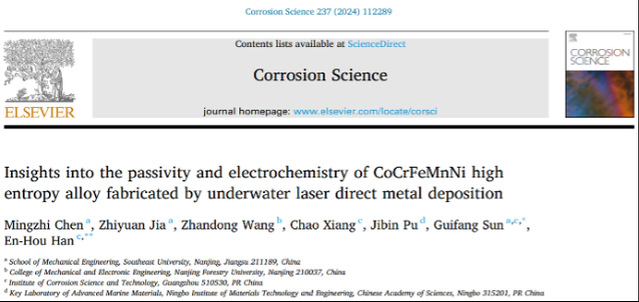 高熵合金(HEA)以其卓越的耐腐蚀性、高强度、高韧性及价格优势,在海洋工程领域展现了巨大的应用潜力。尤其值得一提的是,CoCrFeMnNi HEA因其有望突破传统结构材料强度与延展性相互制约的独特能力而获得广泛关注。鉴于严苛海洋环境极易诱发大型海工装备的腐蚀损伤,造成重大安全隐患,现场修复需求尤为迫切。原位制备CoCrFeMnNi熵合金涂层修复损伤结构件可显著延长水下在役海工装备的服役寿命。然而,当前对于高熵合金沉积层在海洋环境中的钝化膜性质及其形成机理尚未完全揭示,这构成了其腐蚀防护与耐蚀性能预测研究中的一大挑战。