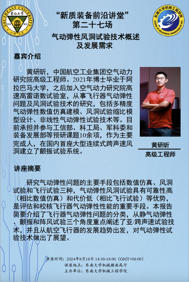 “新质装备前沿讲堂” 第二十七场:黄研昕高级工程师——气动弹性风洞试验技术概述及发展需求