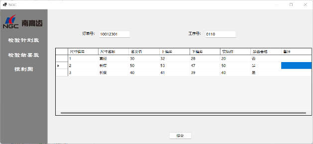 设计UI交互界面,主要完成对零件工艺的检验计划表与检验结果维护表、折线图表的设计。